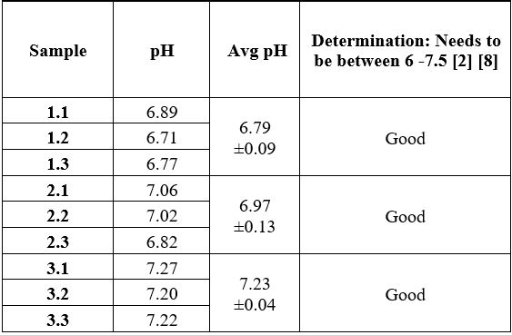 If the compost is above 550 ppm, the compost is considered immature. If the compost is between 100ppm and 550 ppm, this indicates the compost is mature. If the ammonia is lower than 100 ppm, this indicates the compost is very mature [2] [8]. The tests that would have been used for testing are TMECC 4.02-C. Ammonia could not be tested within the EnE Lab due to the lab not being equipped with a working Ion-Selective Electrode.