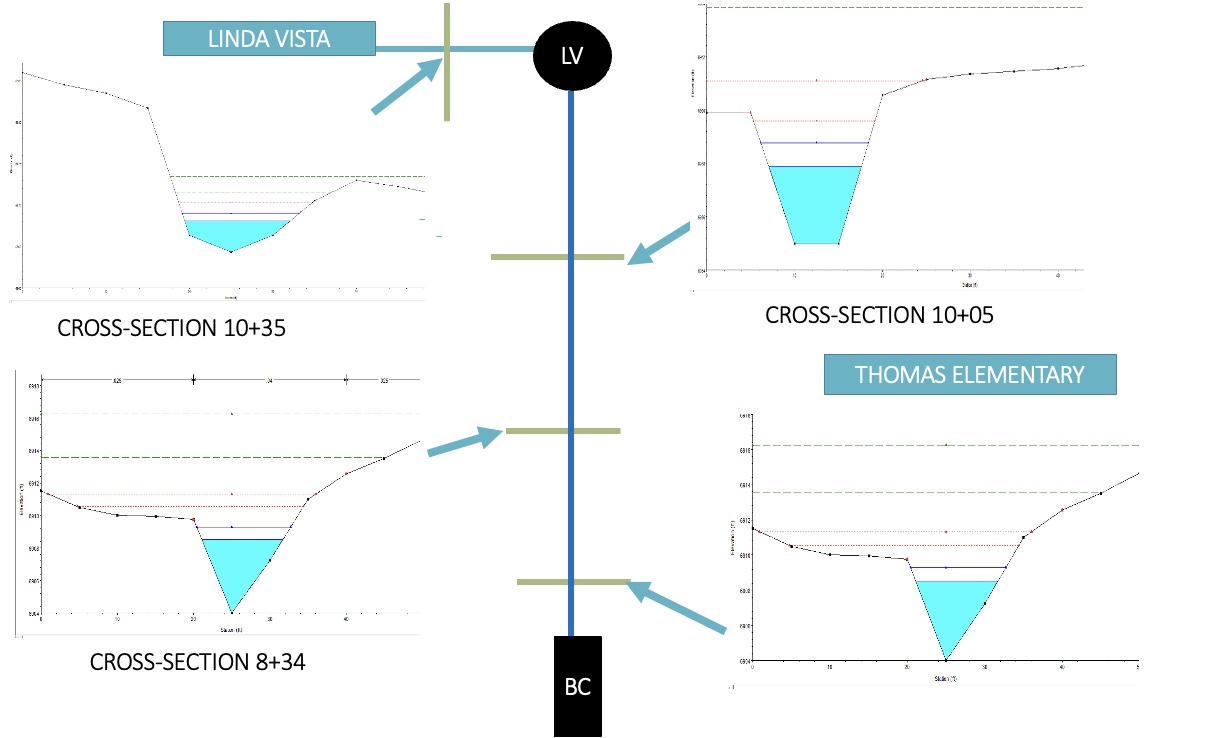 A culvert analysis was performed to determine if the culverts were meeting the city requirements. The analysis can be seen down below where the culverts at Linda Vista and Siler Homes are not in compliance.