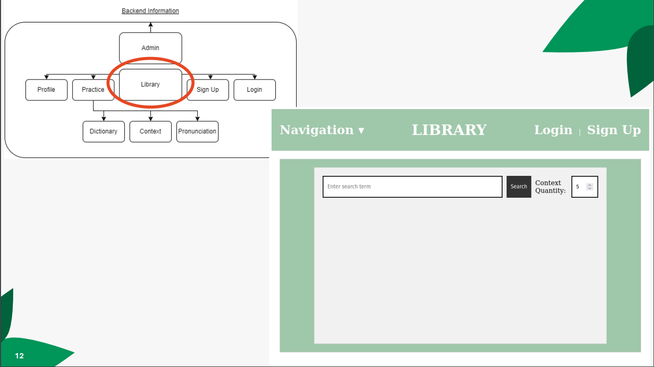 The library is the main landing page of the site and features a search tool that allows any user to perform search queries on the NAU audio corpus, as well as specify the context size around the resulting word.
