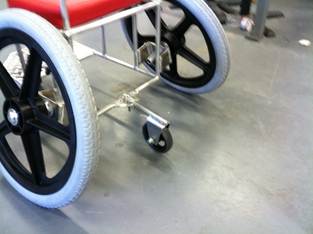 We added push handles that raise or lower. The breaks are slightly behind the