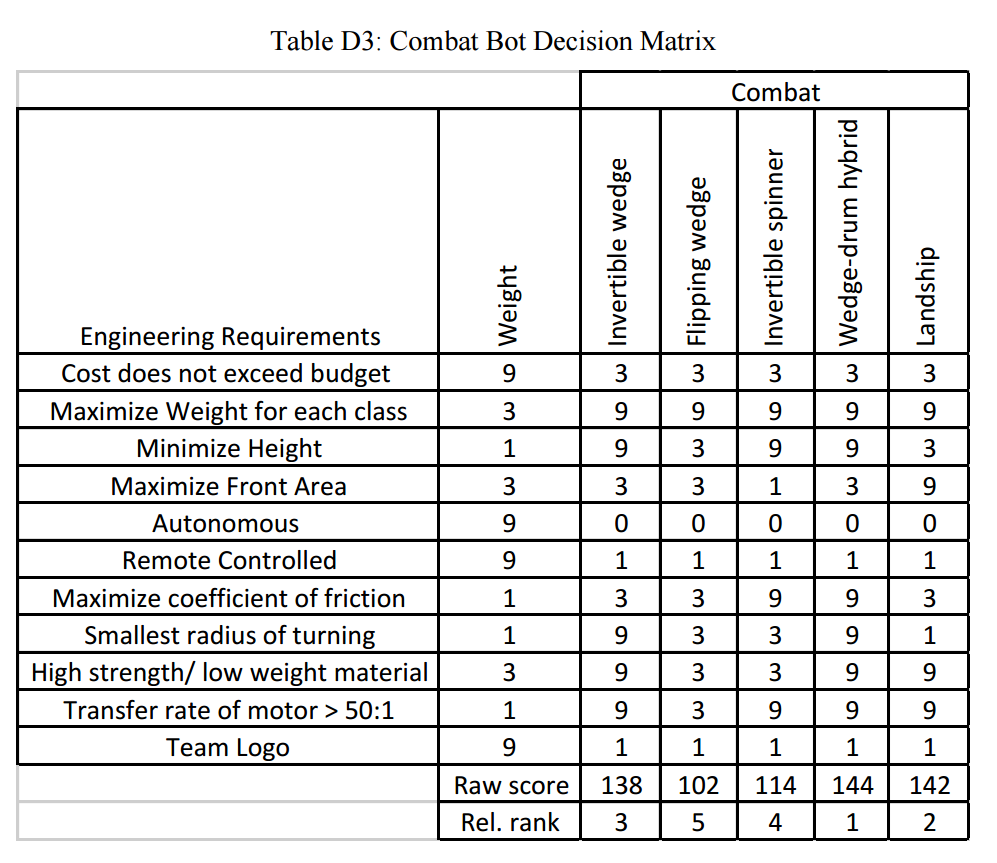 The Descision Matrices show how valuable we view each individual engineering requirement.