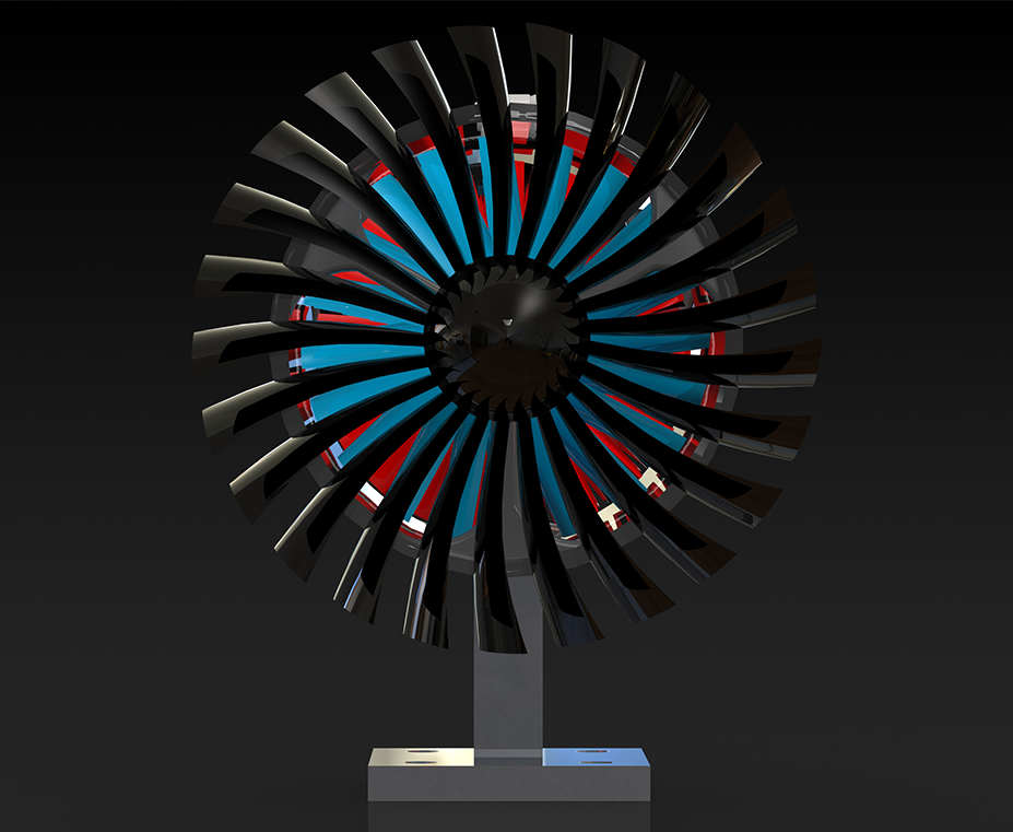 Turb-fan, turbine, and compressor fans completely 3D printed.