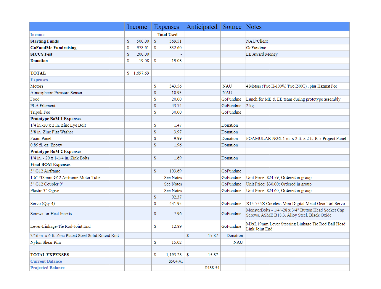 Below is our Bill-of-Materials, outlining the budget outlook of this project. Especially if you are on a mobile device (previews unavailable on smartphone), we encourage you to download the Excel Spreadsheet as these photos are only for quick preview.